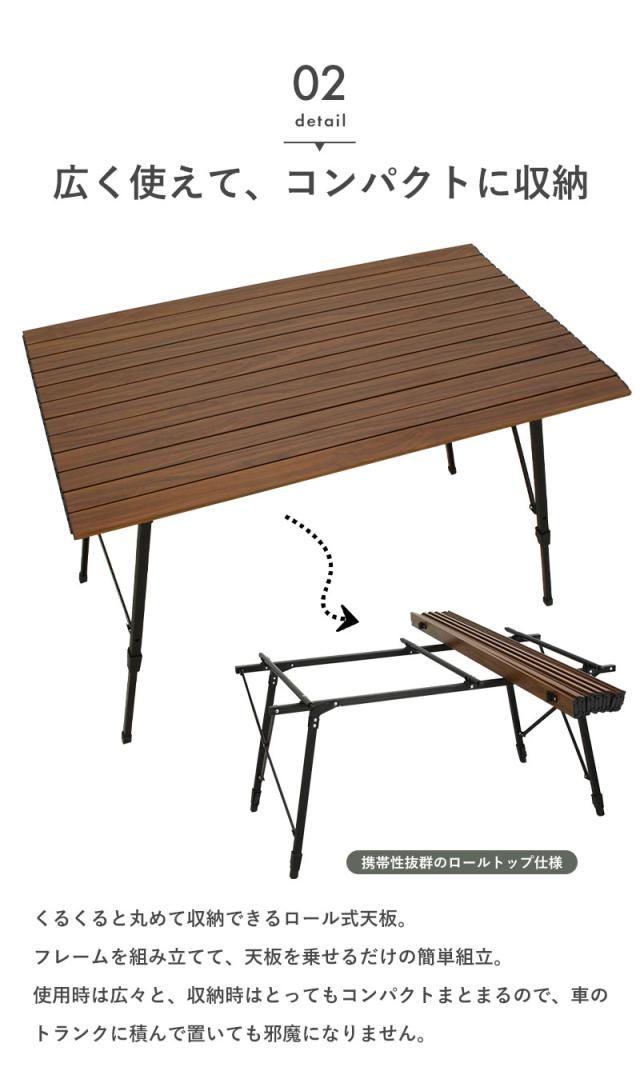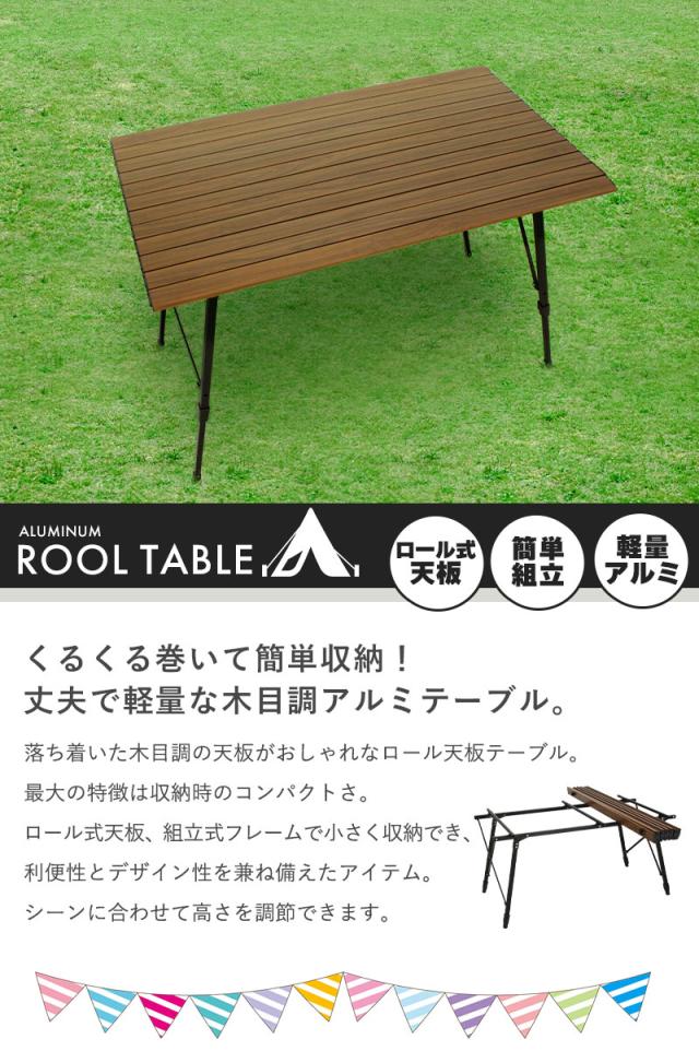 アウトドアテーブル ロールテーブル 折りたたみ 幅120cm ピクニックテーブル アルミ製 軽量 120 ロールトップ 木目調 おしゃれ 収納バッグ付き 折り畳み コンパクト 収納 耐久性 防水性 アウトドア テーブル ロールタイプ キャンプ バーベキュー 海 BBQ 運動会 レジャー キャンプ用品 作業台