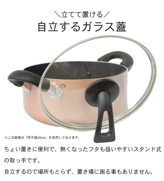 自立するガラス蓋付き片手鍋18cm。