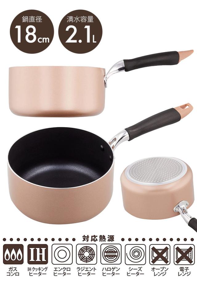 キーワード: 片手鍋 18cm 蓋付き IH対応 ガス火対応 アルミ製 片手 鍋 2.1L ふっ素加工 アルミ なべ 小さい ミニ鍋 蓋つき 片手なべ 自立 フタ付き ガラス蓋 ih ガス 味噌汁 みそ汁 離乳食 小鍋 小型 ミニ 直火 シンプル 調理器具 キッチン用品 新生活 一人暮らし