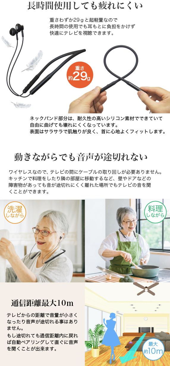テレビ用 ワイヤレス イヤホン 耳元スピーカー USB充電式 TVサポート OTOMO -音友- 首かけ型 音ずれ遅延が無い Bluetooth ネックバンド