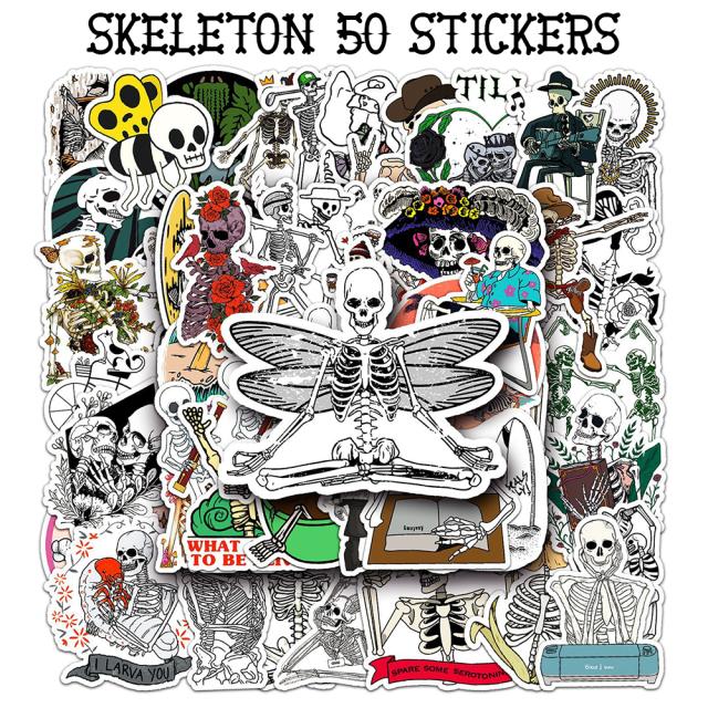 ガイコツ ステッカー 50枚セット PVC 防水 シール グラフィック ドクロ スカル ボーン 骨 ハロウィン 死神 スーツケース MacBook
