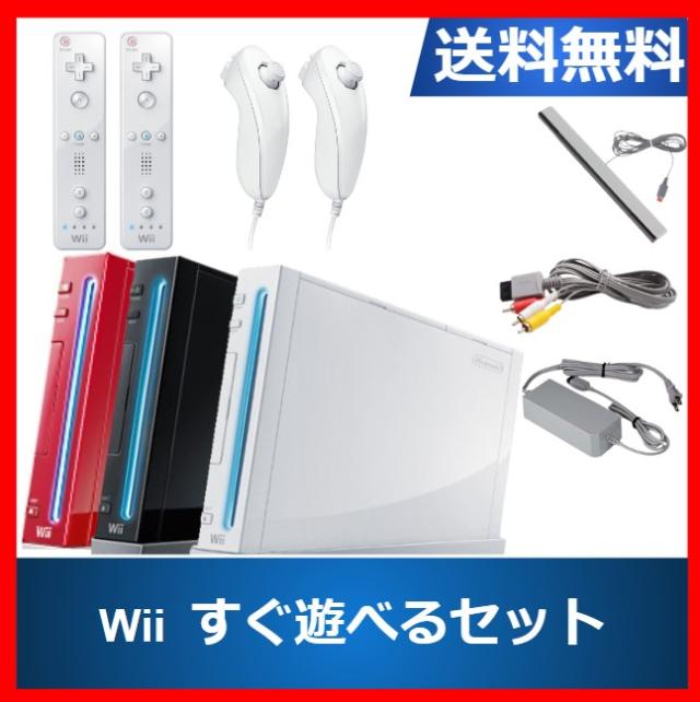 【ソフトプレゼント企画!】Wii 本体 すぐに遊べるセット 2人で遊べる リモコンヌンチャク2個セット 選べる2色 シロ クロ アカ 任天堂【中古】