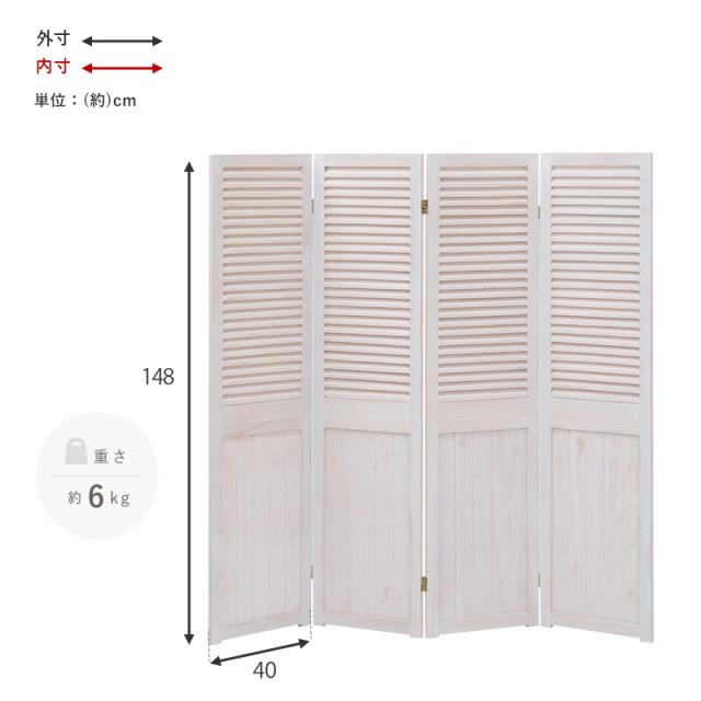 パーテーション シャビーウッド ホワイト 4連 白 おしゃれ かわいい アンティーク風 ナチュラル 仕切り 衝立 木製 代引不可