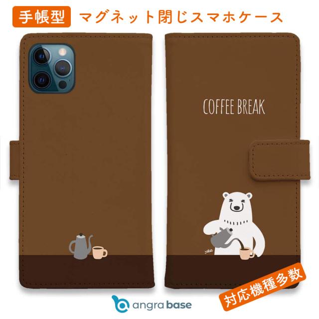 スマホケース 手帳型 カード収納 マグネット iPhone17 Pro Max iPhone Air iPhone16e iPhone16 Pro Max 16 Plus 15 Pro Max Xperia 10 VII Galaxy AQUOS ARROWS Pixel10 XL しろくま 白熊 白クマ シンプル おしゃれ コーヒー注ぐシロクマさん(wakat)