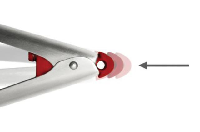 調理中、片手でも簡単にトングの開閉ができるクリック開閉式です。持ち手の端部分をクリックすると、一瞬でトングが開かないようロックできます。