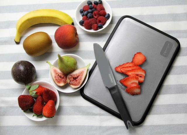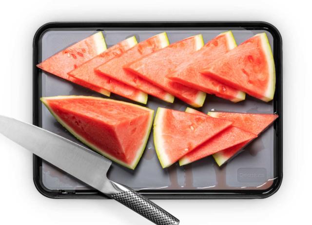 フチが付いているので水分の多いスイカなどを切る時にキッチンが汚れる心配がありません。