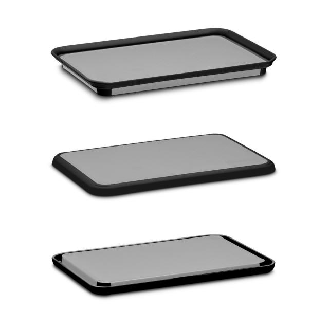 お料理をカットしてそのまま食卓にトレーとして運べます。飛び散りやすいパンくずなども、溝がキャッチし裏返すだけで簡単に捨てられます。
