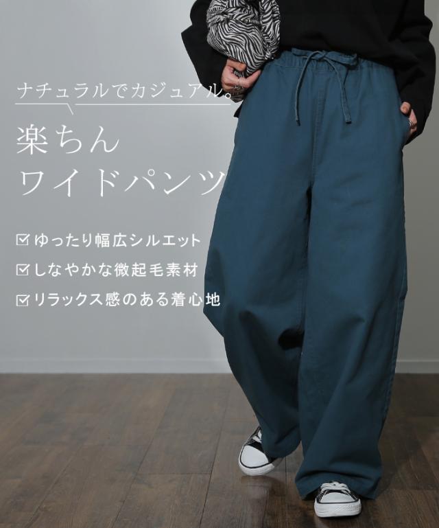 【冬SALE】 パンツ 「 ゆるっとハマる。 」 綿100% 微起毛 ワイドパンツ レディース パンツ ワイド ナチュラル リラクシーパンツ ボトムス ロング ズボン イージー ワークパンツ ロングパンツ 大きいサイズ ゴム 体型カバー 黒 ブラック HUG.U 冬 秋 秋新作