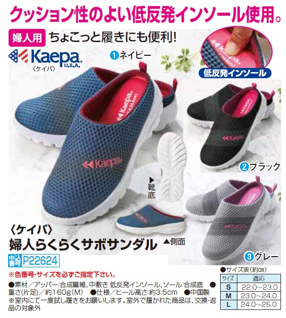 ケイパ 婦人らくらくサボサンダル(全3色) サンダル サボ 靴 シューズ レディース 婦人服 ミセス シニア 女性 ブラック グレー ネイビー 黒 灰色 紺色 メッシュ シニアファッション 50代 60代 70代 80代 母の日 お母さん