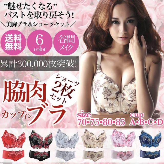 M*R collection 脇高ブラ&ショーツセット 【ショーツ2枚セット】 脇肉 背肉 スッキリ 美乳 補正ブラ 下着 ブラ 脇肉ブラジャー 下着セット ブラセット 脇高 送料無料 下着レディースセット 補正下着