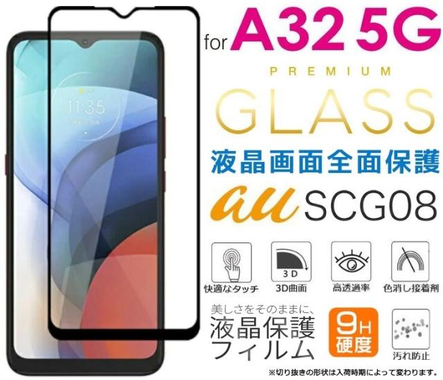Galaxy A32 全画面保護ガラスフィルム A32 3D曲面フィルム フルカバー SCG08液晶保護フィルム9H ブラック 飛散防止 高透過率