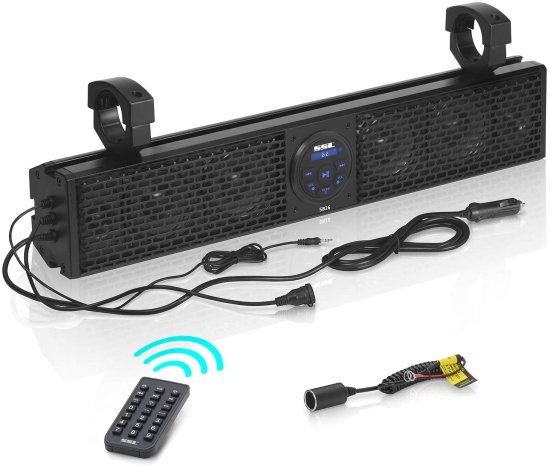 Sound Storm Laboratories SB26 UTV Sound Bar System - 26 Inch Wide, Weatherproof IPX5 Rated, Bluetooth, Amplified, 4 Inch Speakers, 1 Inch Horn Loaded Tweeters, Easy Installation for 12 Volt Vehicles