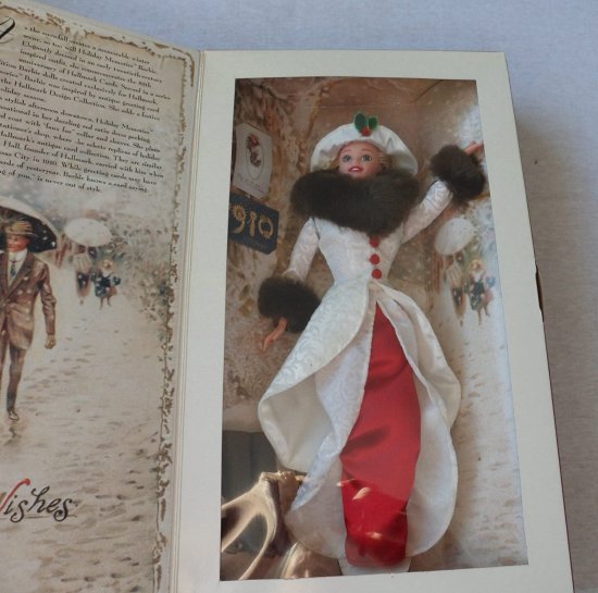 Barbie バービー年1995年のホールマークスペシャルエディション12インチ人形 - レッドサテンドレス付きバービー、「フェイクファー」の襟と袖、帽子、イヤリング、ハンドリング、ブーツ付きの群れのコート