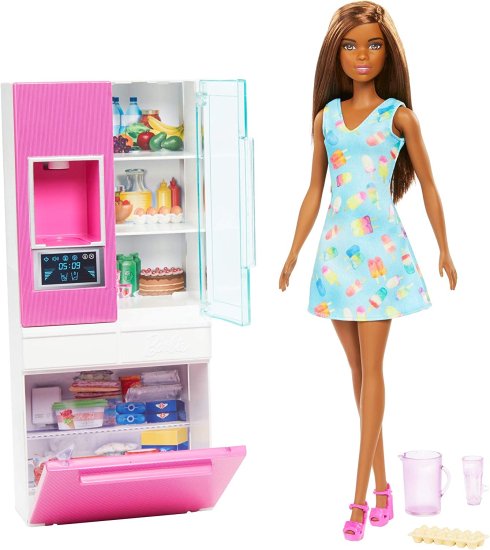 ・Add variety to Barbie doll"s world by collecting all her fabulous furnishings and toys (each sold separately, subject to availability). This Barbie kitchen refrigerator set makes a great gift for 3 to 7 year olds.