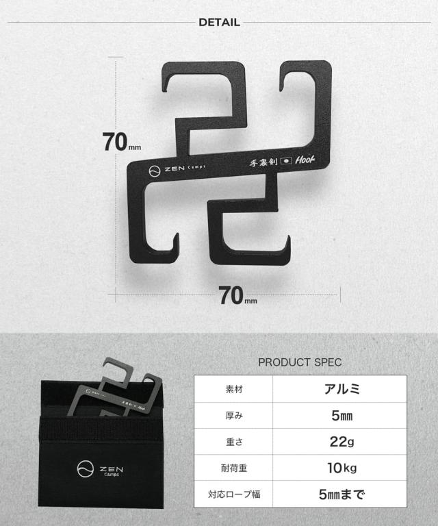 ZEN Camps 手裏剣フック (単品) ロープフック ロープハンガー 引掛けフック S字フック キャンプ テント タープ キャンプ アウトドア