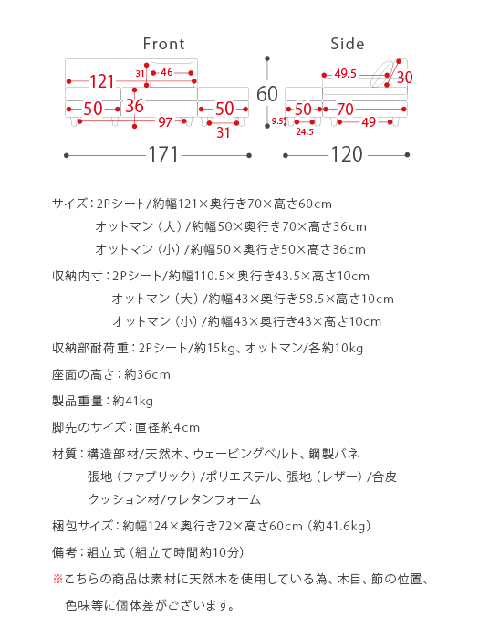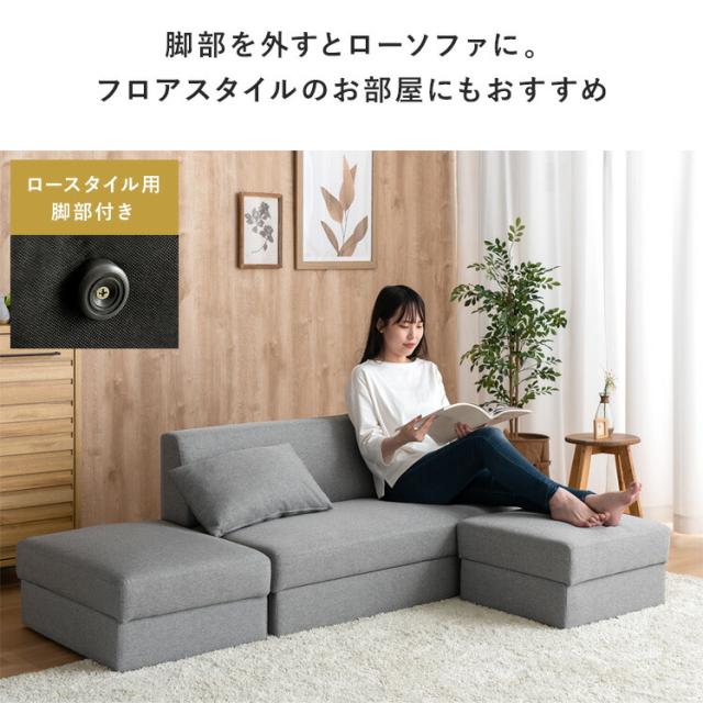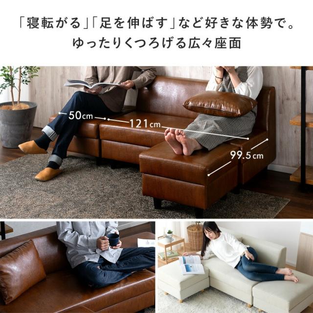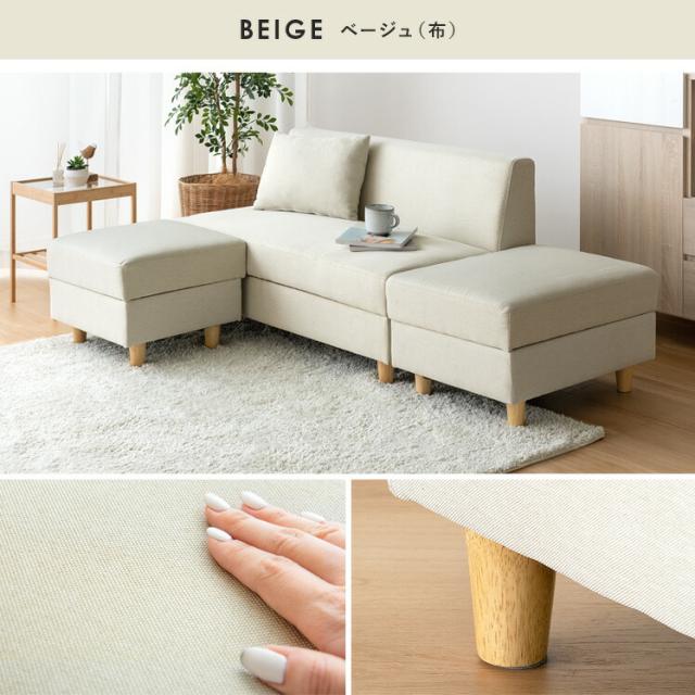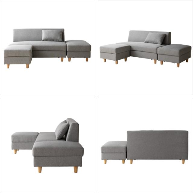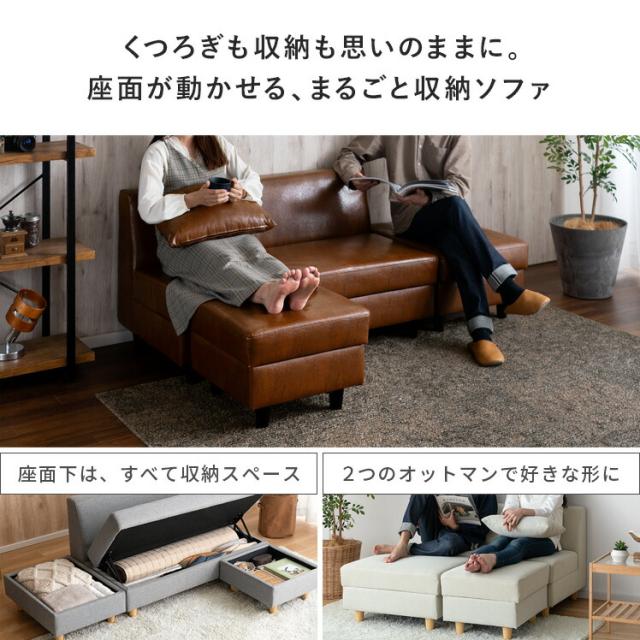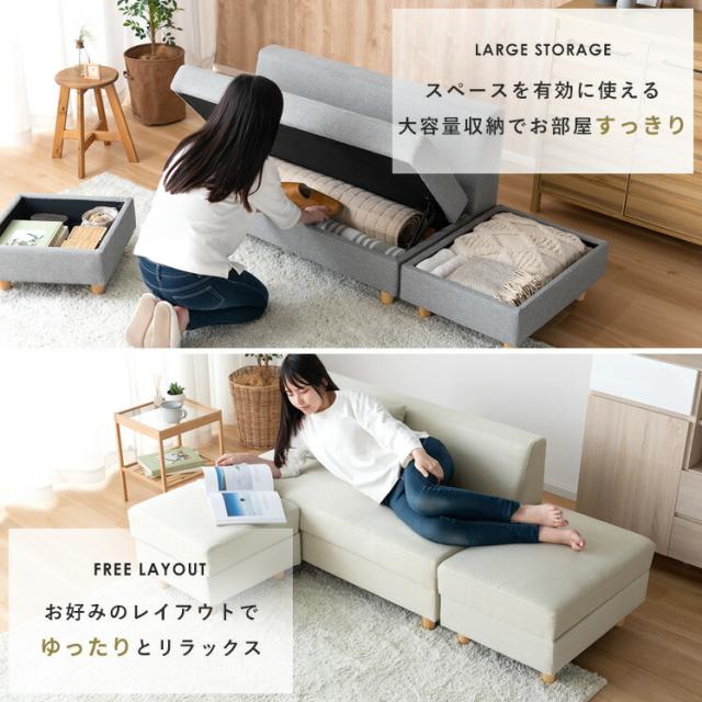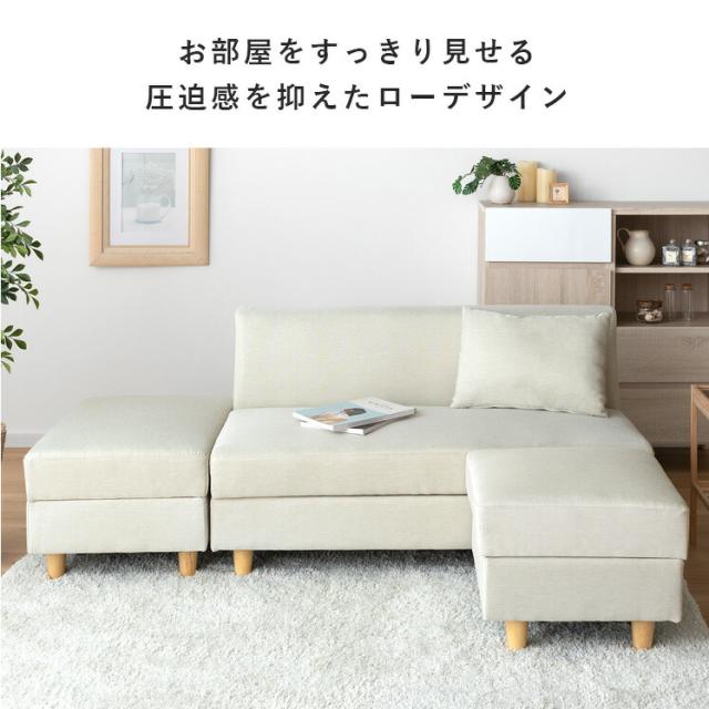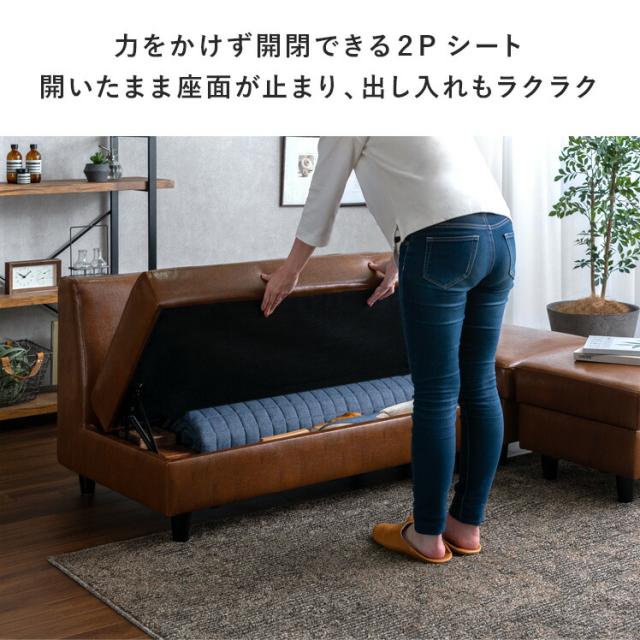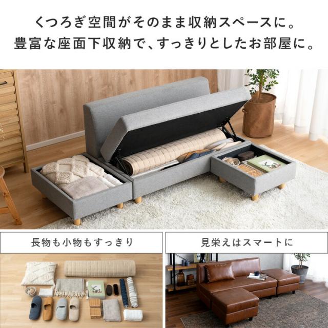 ソファー 2人掛け 収納付き カウチソファ オットマン 北欧