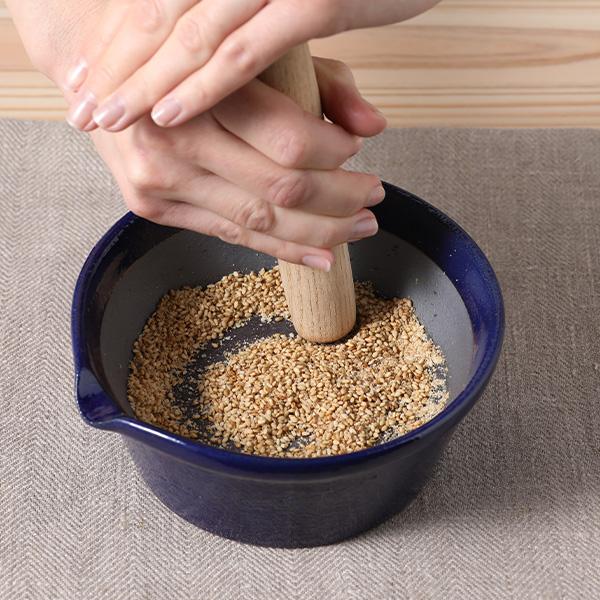 すりバチ と すりコギ のセットです。すりバチのカラーを白と藍からお選びください。 | ||||||