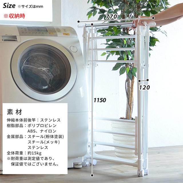 洗濯物干しラック ワンタッチ収納洗濯物干しラック ワイド 室内 コンパクト収納 ハンガーラック 部屋干し 伸縮式 折りたたみ キャスター付き 簡単 組み立て