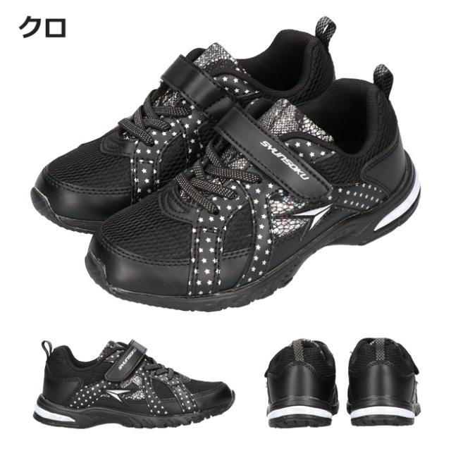 アキレス 瞬足 スニーカー キッズ ジュニア 女の子 軽量 2E 黒 マジックテープ 走りやすい おしゃれ LEC7470 LC-747 シューズ 子供 靴