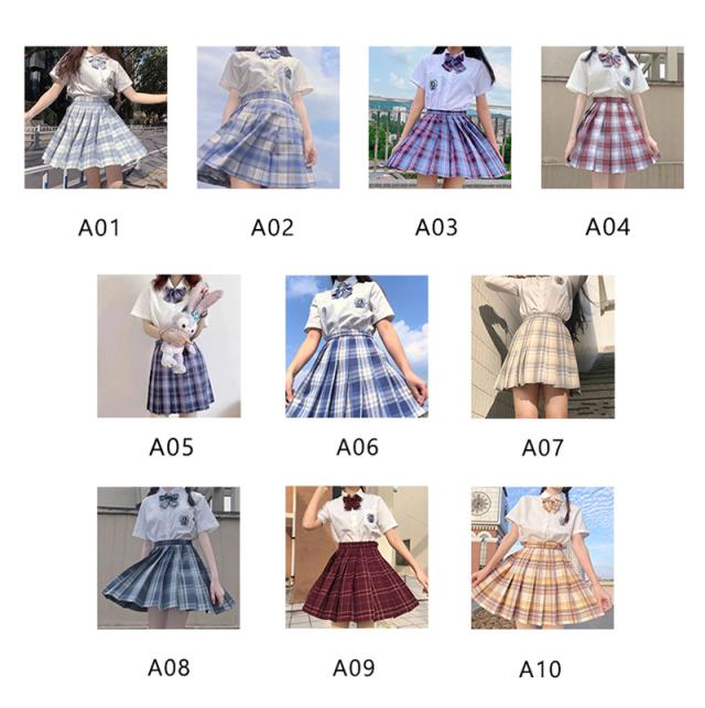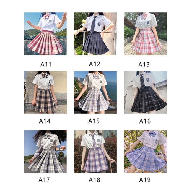 プリーツスカート 3点セット スクール 制服 スカート 半袖 ネクタイ チェック柄 ミニスカート 膝上 女子 高校生 セーラー服