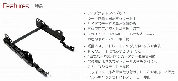 フルバケットタイプなど、シート側面で固定するシート用のレールです。