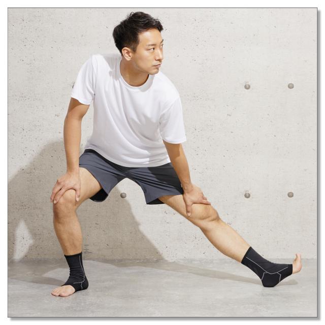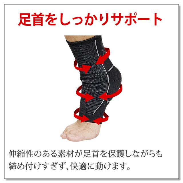 このサポーターは伸縮する素材を使用しており、適度な力で足首を