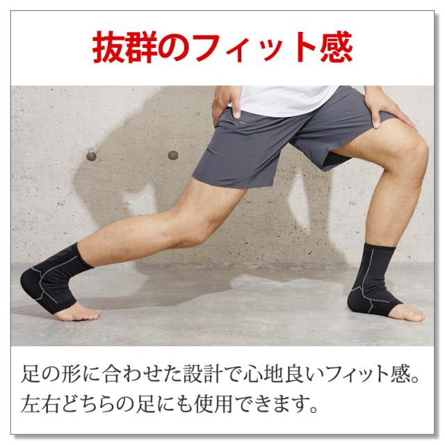 足の形に合わせた設計で心地良いフィット感。左右どちらの足にも使用できます。