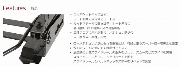 フルバケットタイプなど、シート側面で固定するシート用のレールです。