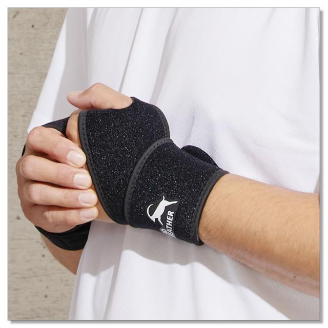 親指を穴に通して面ファスナーを留めるだけなので、利き手へも簡単に装着出来ます。