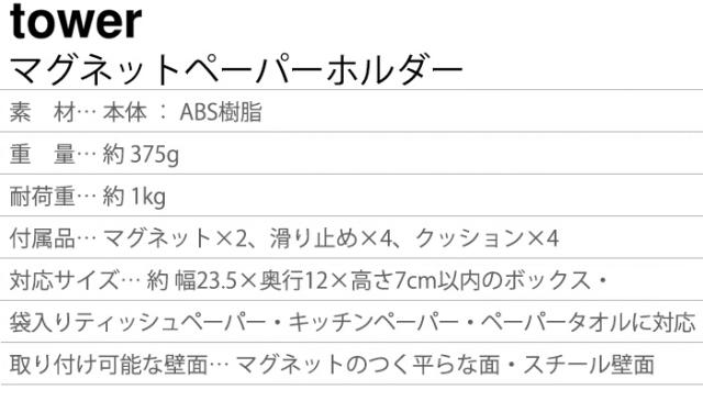 山崎実業 タワー tower マグネットペーパーホルダー 5439 5440 ペーパータオルホルダー おしゃれ 磁石 ペーパータオルケース ペーパータオル ホルダー マグネット ボックスティッシュケース キッチン収納 キッチンペーパーホルダー【12時迄のご注文は当日発送★P5倍】