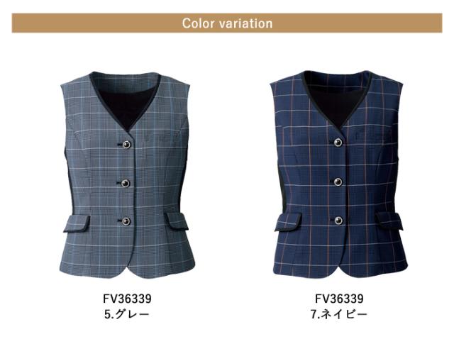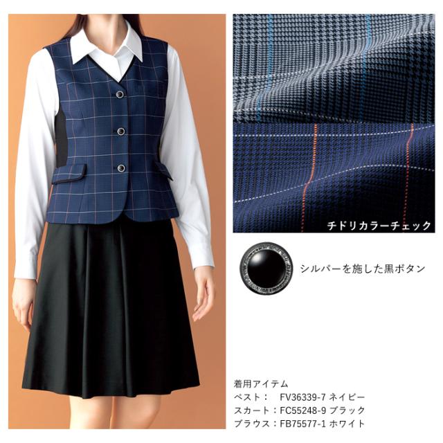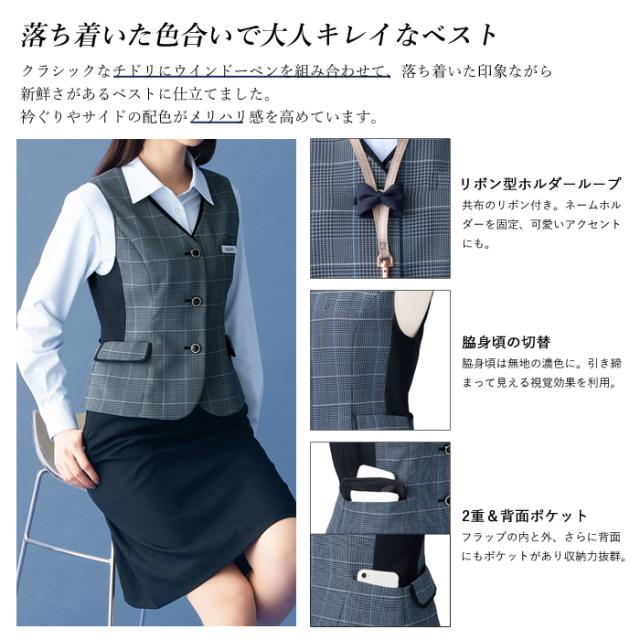 クラシックな千鳥柄に、ウインドウペン柄を組み合わせた現代的なチェック柄の事務服ベストです。