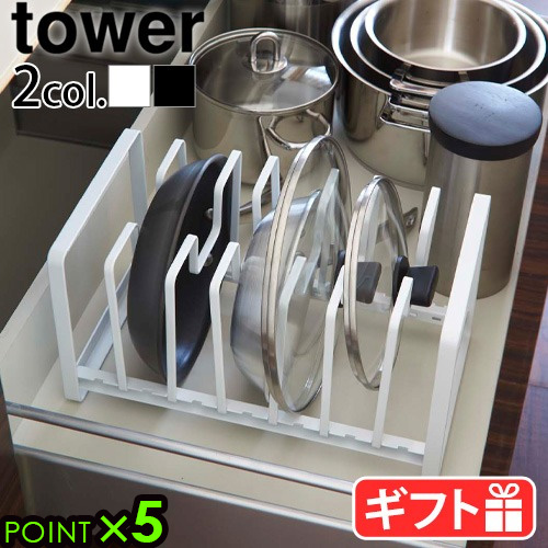 タワー 山崎実業 tower シンク下 フライパン&鍋蓋スタンド 2280 2281 鍋蓋 スタンド おしゃれ 鍋フタ 鍋の蓋 鍋ふた 中華鍋 収納 仕切り フライパン キッチン収納 皿立て ホワイト ブラック yamazaki【12時迄のご注文は当日発送★送料無料★P5倍】