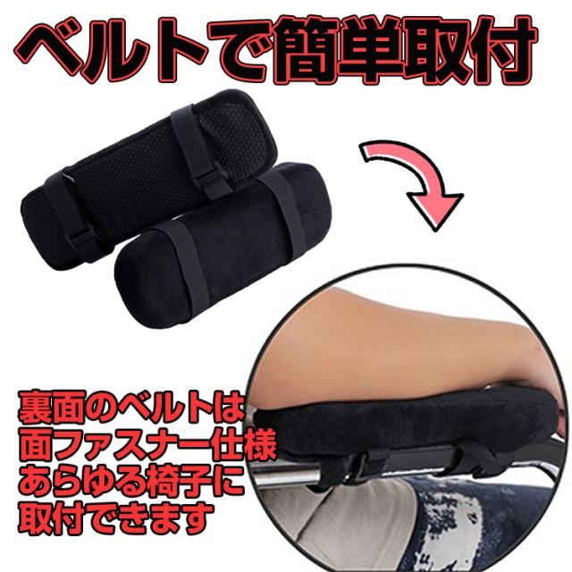 肘掛けクッション 肘置き 肘掛けカバー アームレスト 低反発スポンジ ベルト固定式パッド カバー水洗い可 オフィスチェア 車椅子などに 汎用タイプ 2個セット FSD23575S2