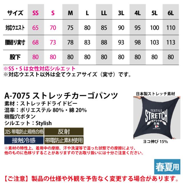 【A-7075 ストレッチカーゴパンツ】