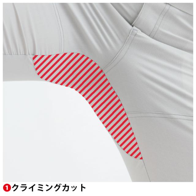 ◇機能:クライミングカット・フロント持ち出し仕様・反射素材(膝裏)・両脇カラビナループ付・両脇コインポケット付・マルチポケット・オールシーズン対応素材・JIS帯電防止規格合格・帯電防止素材使用・ストレッチ・樹脂穴ボタン
