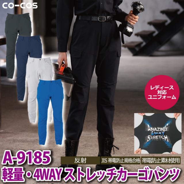 コーコス 作業服 春夏用 A-9185 軽量・4WAYストレッチカーゴパンツ SS-LL