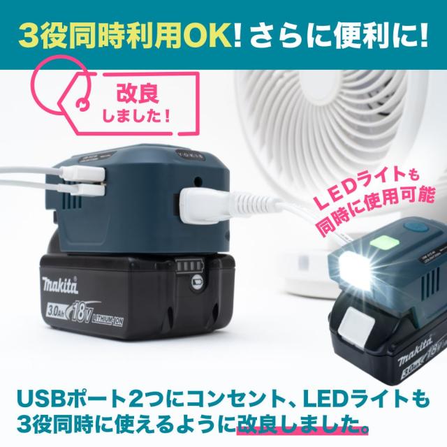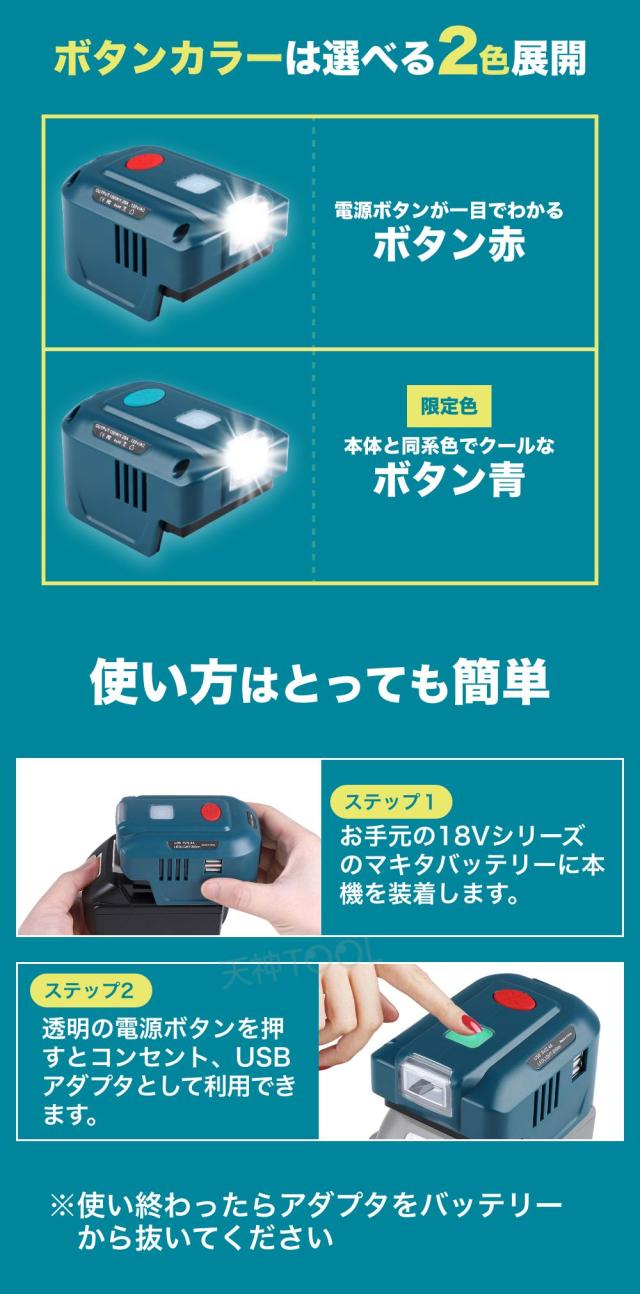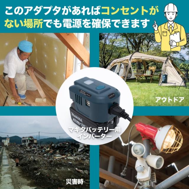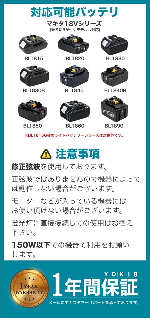 マキタ 18V バッテリー インバーター 電源が無い場所で電気製品が使える アダプタ YOKIYA ヨキヤ 良き屋 LEDライト 100V-110V 出力 ポータブル電源 キャンプ 防災