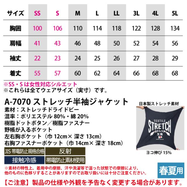 A-7070 ストレッチ半袖ジャケット
