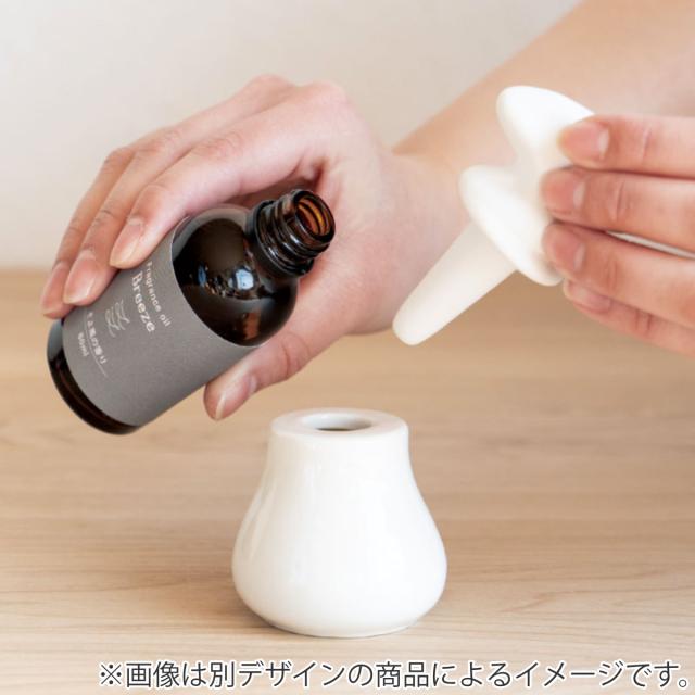 蓋を開けてアロマオイルを注ぐと、半日程度で素焼きが吸収、拡散して柔らかなアロマの香りが広がります。デスクワークのひと時にリフレッシュしたり、ベッドサイドに置いてリラックスしたり、香りのある生活を手軽に始められます。