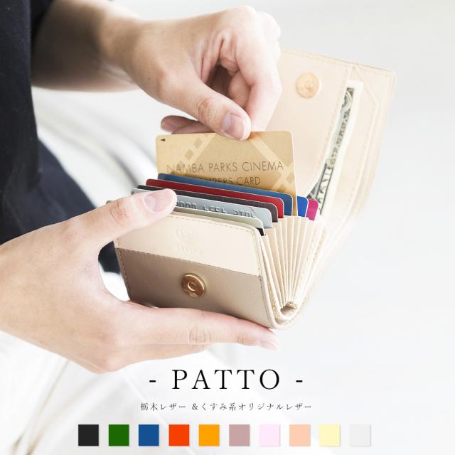 二つ折り ミニ財布 PATTO 栃木レザー くすみカラー コンパクト財布 レディース 小さい ミニ財布 蛇腹 カードケース スキミング 磁気防止 RFID 小さい財布 メンズ コンパクト財布 本革 ギフト