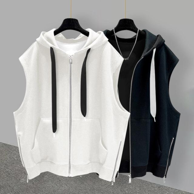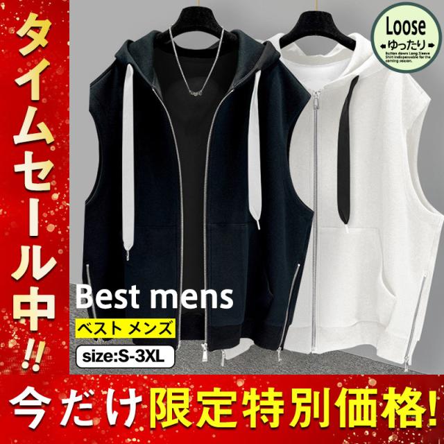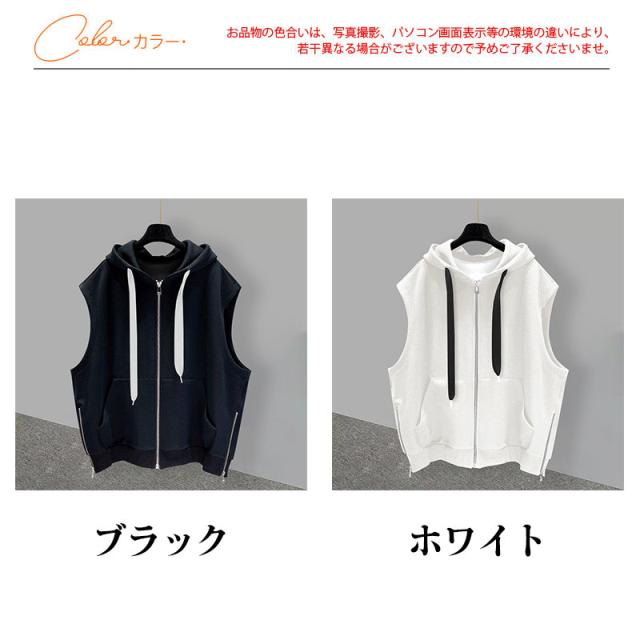 ベスト メンズ フード付き ノースリーブ レディース ジャケット パーカー ジップアップ カジュアル ゆったり 大きいサイズ 無地