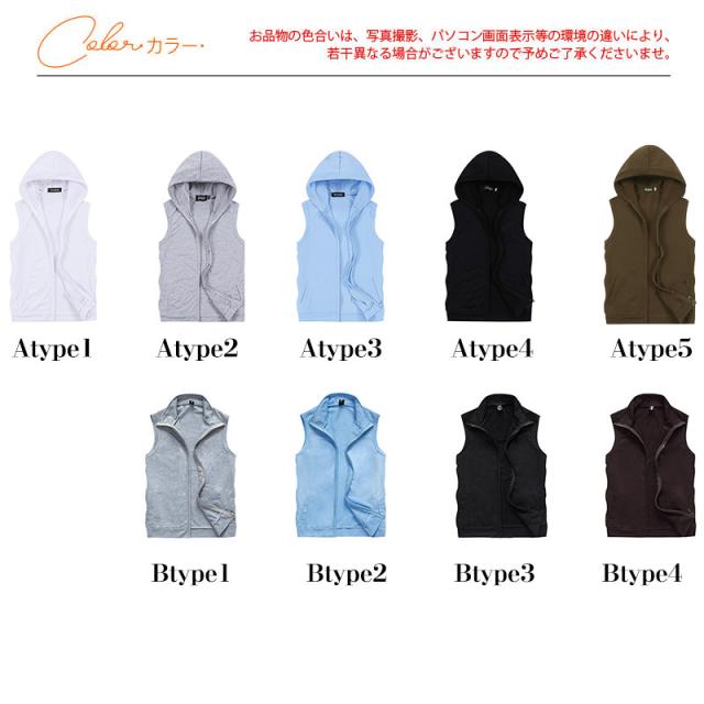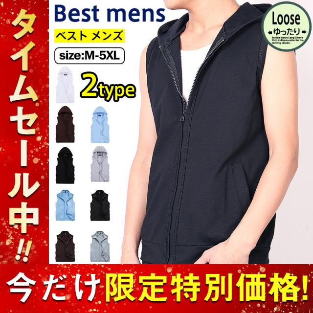 ベスト メンズ パーカー フード付き ノースリーブ ジップアップ ジャケット アウター 大きいサイズ 無地 着痩せ シンプル スポ