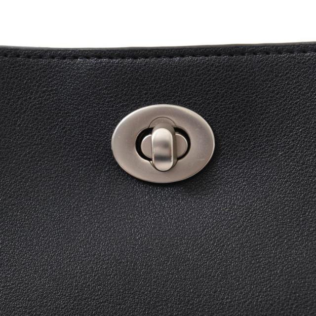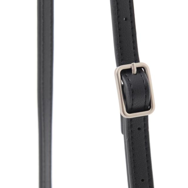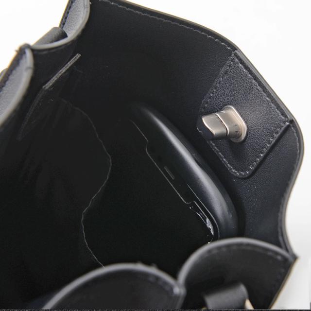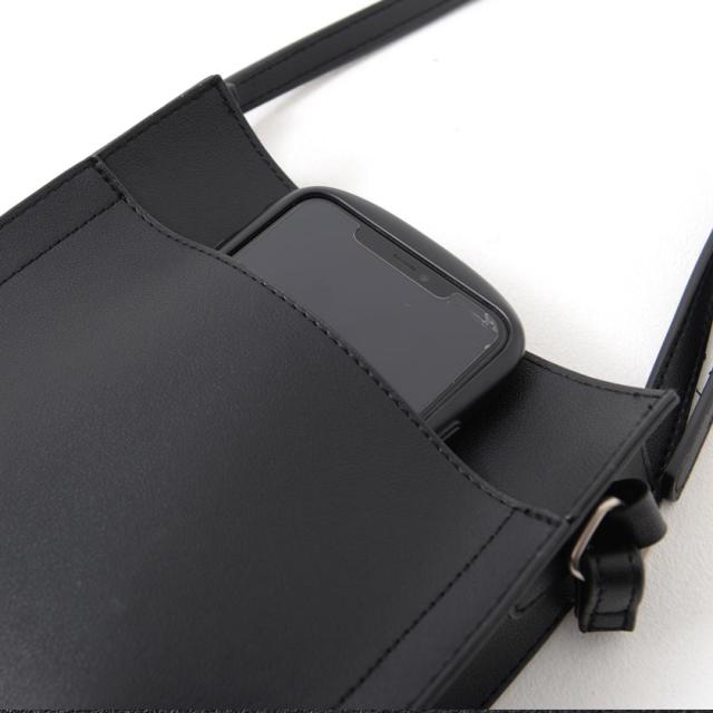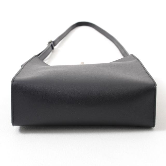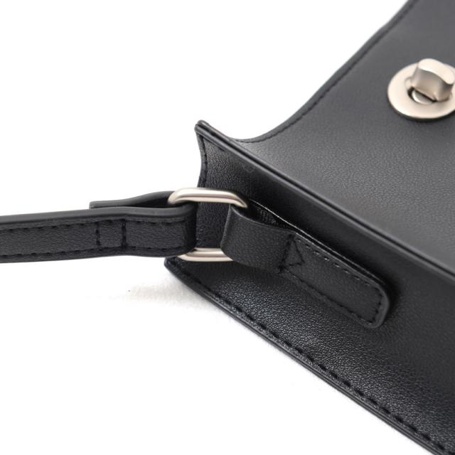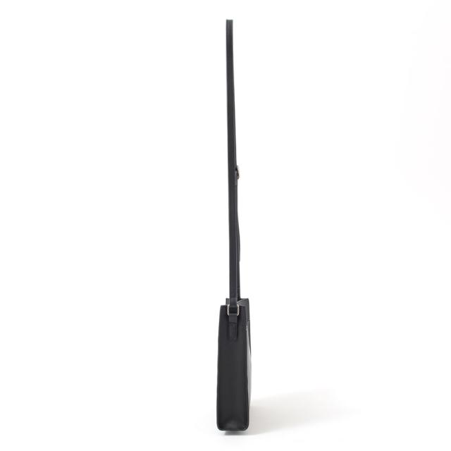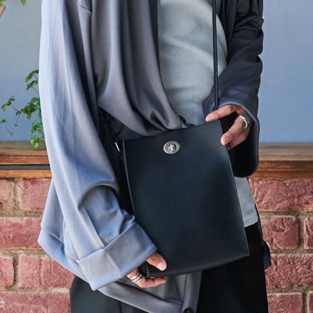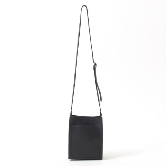 PUレザーを一枚革風に仕立てた素材を使用した、かっちりとした仕上がりのミニショルダーバッグ。