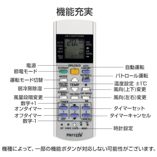 Panasonic エアコン用 リモコン 互換 汎用 設定不要 パナソニック Eolia エオリア ナノイーX 対応 代替え コントローラー 代用 予備