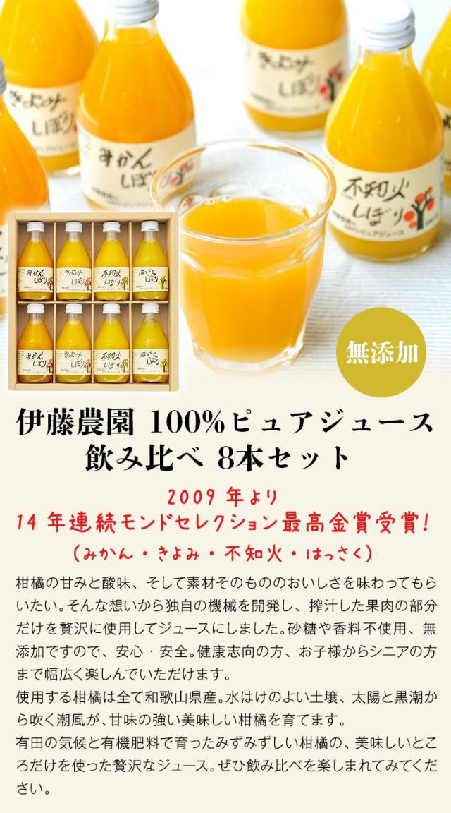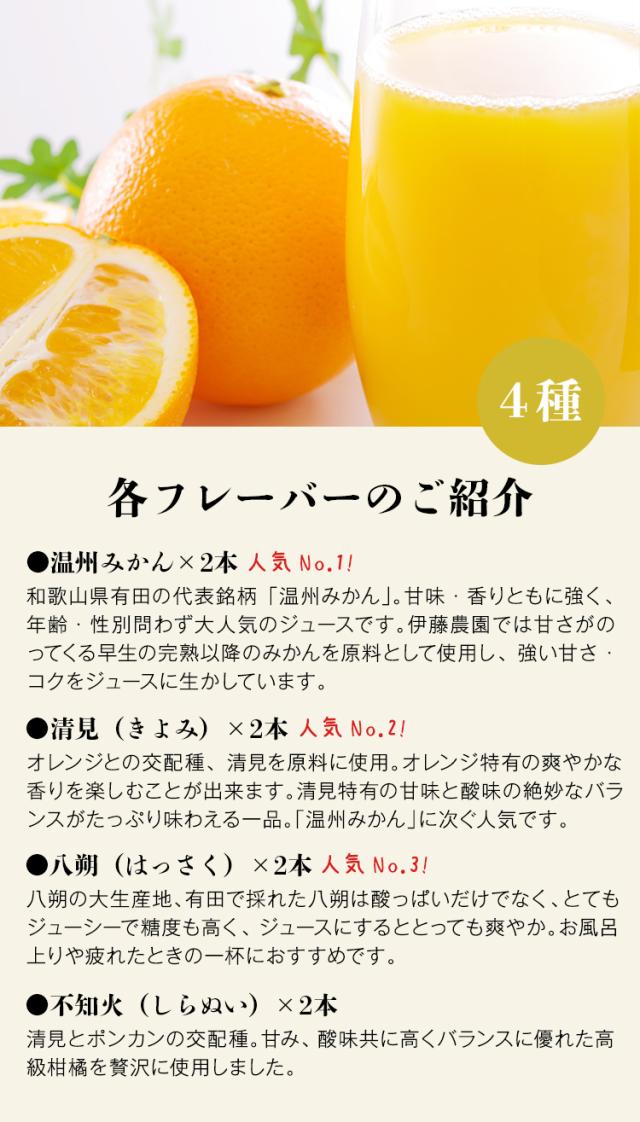 ジュース詰め合わせ みかん 100% 無添加 4種 8本 180ml×8 みかん きよみ はっさく 不知火 伊藤農園 和歌山 産直 常温便 同梱不可 指定日不可
