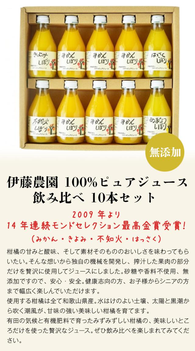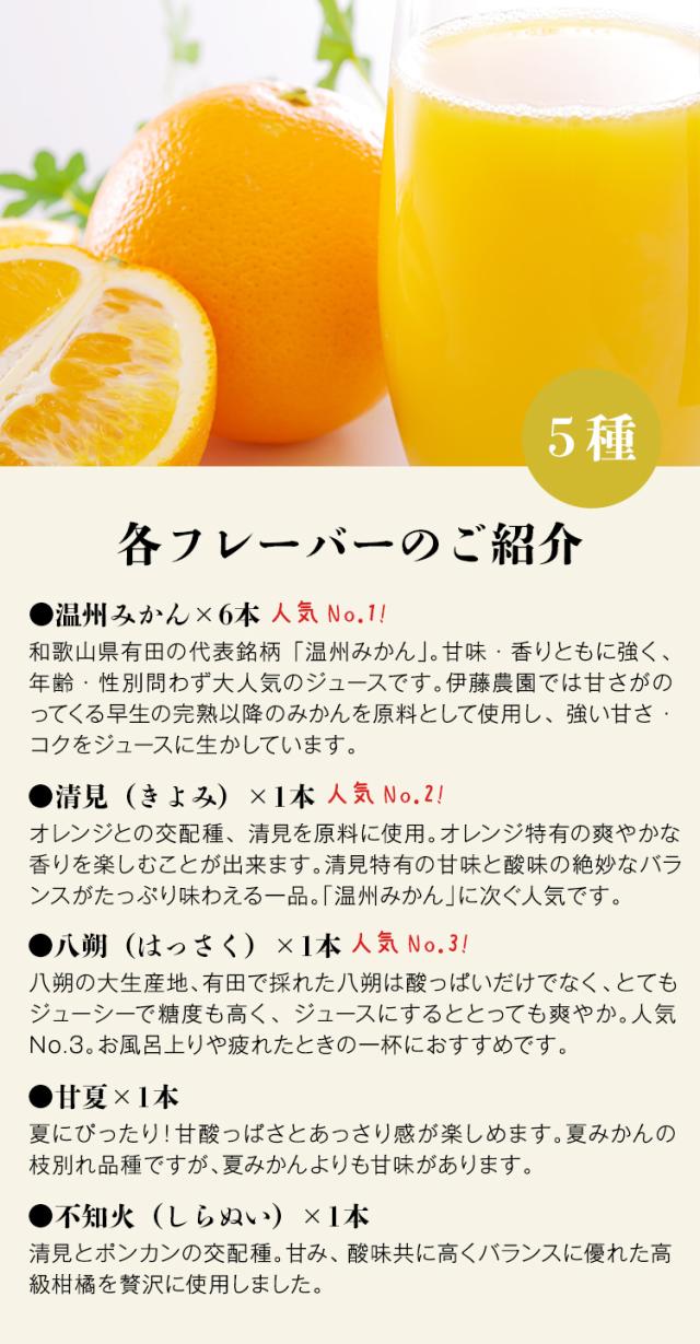ジュース詰め合わせ みかん 100% 無添加 5種 10本 180ml×10 みかん きよみ はっさく 甘夏 不知火 伊藤農園 和歌山 産直 常温便 同梱不可 指定日不可