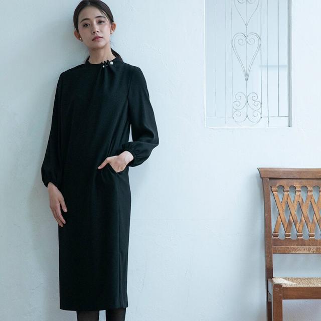 【kaene】【喪服・礼服】パールピン付きワンピース/卒学式・七五三・お宮参り/ブラックフォーマル
