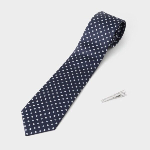 ギフトで人気のベーシックカラー&柄のネクタイと合わせやすいタイバーをセットしたギフトセット