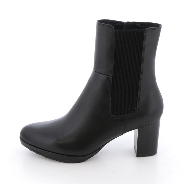 リブ素材のサイドゴアとすっきりと足首にフィットする美脚シルエットで、シック&モードな大人顔にアレンジ。