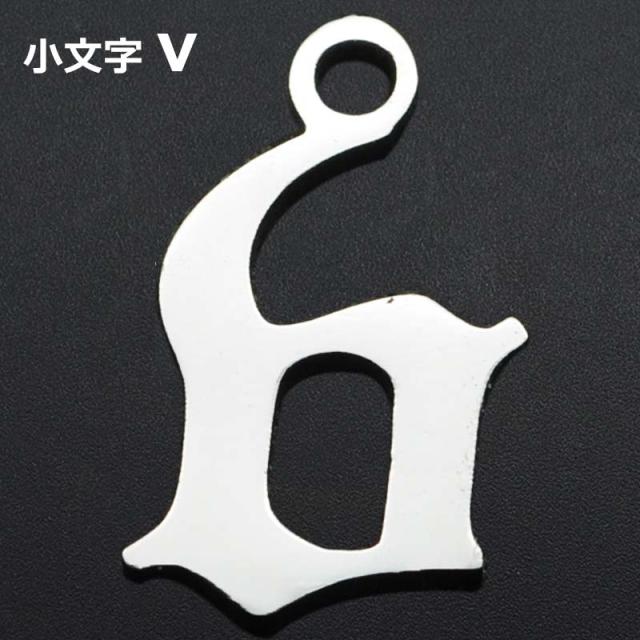 ゴシックアルファベットステンレスパーツ(小文字:v) 1個 英語 メッセージ イニシャル レター 文字 チャームパーツ メンズ レディース 部品 金具 DIY ペンダントトップ アクセサリーチャーム ピアス クラフト 手作り ネックレス ハンドメイド ブラックレター V ブイ ヴイ